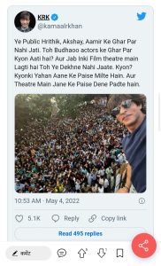 बता दें कि यह दावा करने वाले कोई और नहीं बल्कि फिल्म क्रिटिक्स और एक्टर केआरके यानी कमाल राशिद खान हैं जो आए दिन किसी न किसी कारण से विवादों में घिरे रहते हैं या फिर यूं कहें कि इनका विवादों से गहरा रिश्ता है.