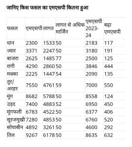 इसमें 14 फसलों को शामिल किया गया है. धान का नया एमएसपी 2300 रुपये होगा.