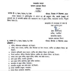 सामान्य प्रशासन विभाग के सचिव एम सेलवेन्द्रन द्वारा आधी रात को जारी आदेश में कहा गया है कि राज्यपाल के आदेशानुसार आईएएस अनुराग जैन को भारत सरकार में प्रतिनियुक्ति से लौटने पर अस्थाई रूप ससे आगामी आदेश तक स्थानापन्न रूप से मुख्य सचिव, मप्र शासन नियुक्त किया गया है।