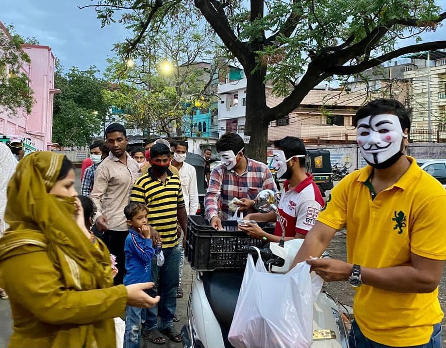 हेलोवीन मास्क लगाकर बांट रहे ज़रूरतमंदों को राशन ताकि पहचान छिपी रहे
